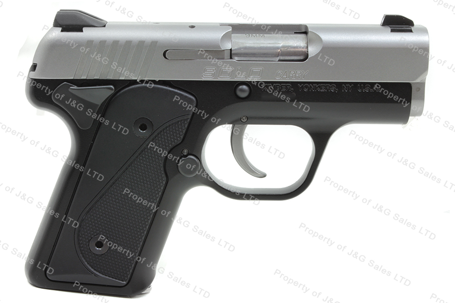 This is a Kimber Solo Carry 9mm semi automatic handgun. This gun features a 2.7 inch steel barrel, stainless steel slide, black frame, fixed white dot sights, with an ambidextrous thumb safety and mag release. Includes one 6 round magazine and a soft carry case. New.