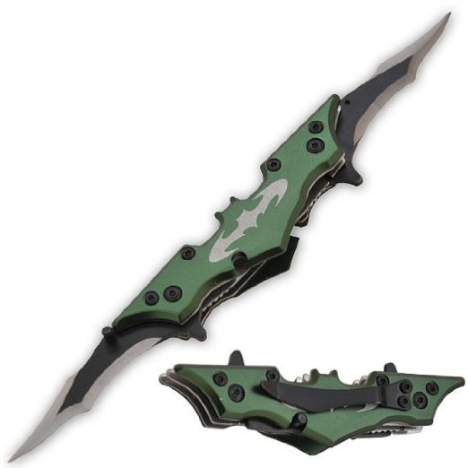 Large 11" JOKER GREEN Batman Twin Blade Batarang Style Pocket Knife