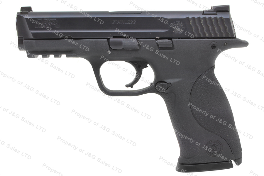 S&W M&P semi auto pistol chambered for 40S&W. Features a 4.25'' blackened stainless steal barrel, low profile windage adjustable white dot sights, Melonite finished stainless steel slide and black polymer frame with accessory rail. They also features double action only and ambidextrous slide release. Comes with 2 extra back straps, two 10 round magazines and the black S&W case. These are clean law enforcement trade ins. Very good plus condition, Used.