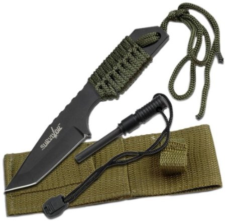 Survivor HK-106320 Outdoor Fixed Blade Knife 7 Overall WITH FIRE STARTER
