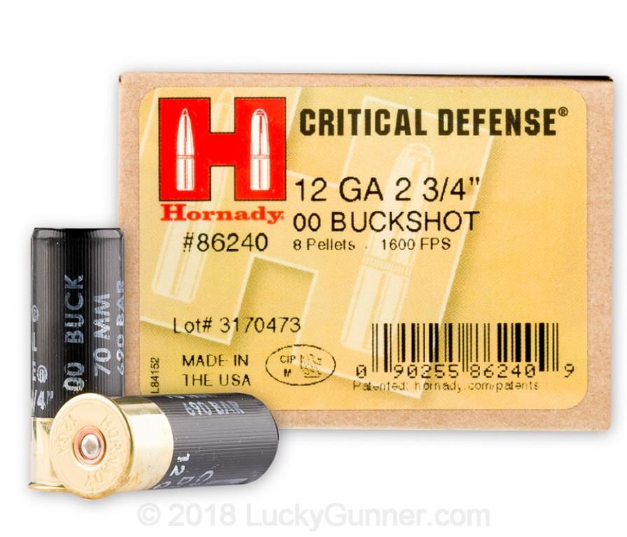 12 ga - 2-3/4" - 00 Buck - Critical Defense - Hornady - 100 Rounds