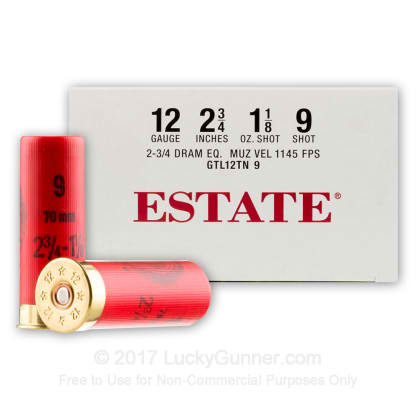 12 Gauge - 2-3/4" 1-1/8oz #9 Shot - Estate Cartridge - 250 Rounds