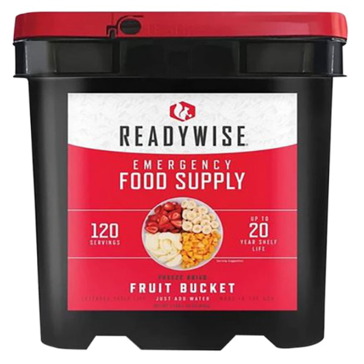 The ReadyWise 120 Serving Freeze Dried Fruit Bucket is a perfect addition to any food supply. Whether you're affected by a snow storm, hurricane or other weather emergency, it's wise to be prepared. These great-tasting freeze-dried and dehydrated foods are ready in minutes when you just add water. They also come in stackable buckets with an easy Grab-N-Go handle, so they're easy to store and transport. What's included in each bucket?