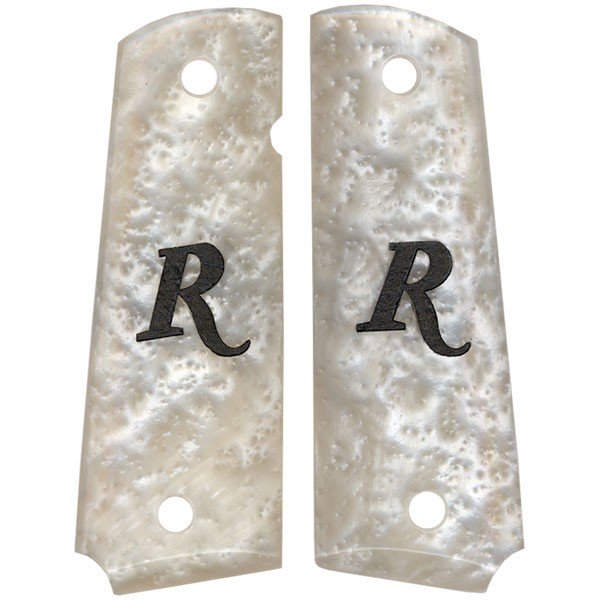 1911 GRIP WHITE PEARLITE POLYMER REMINGTON The same factory original grip set featured on the Remington 1911 R1 Enhanced Pearl Edition .45 ACP, these high-quality molded polyurethane resin grips simulate the iridescent shimmer and feel of Mother of Pea