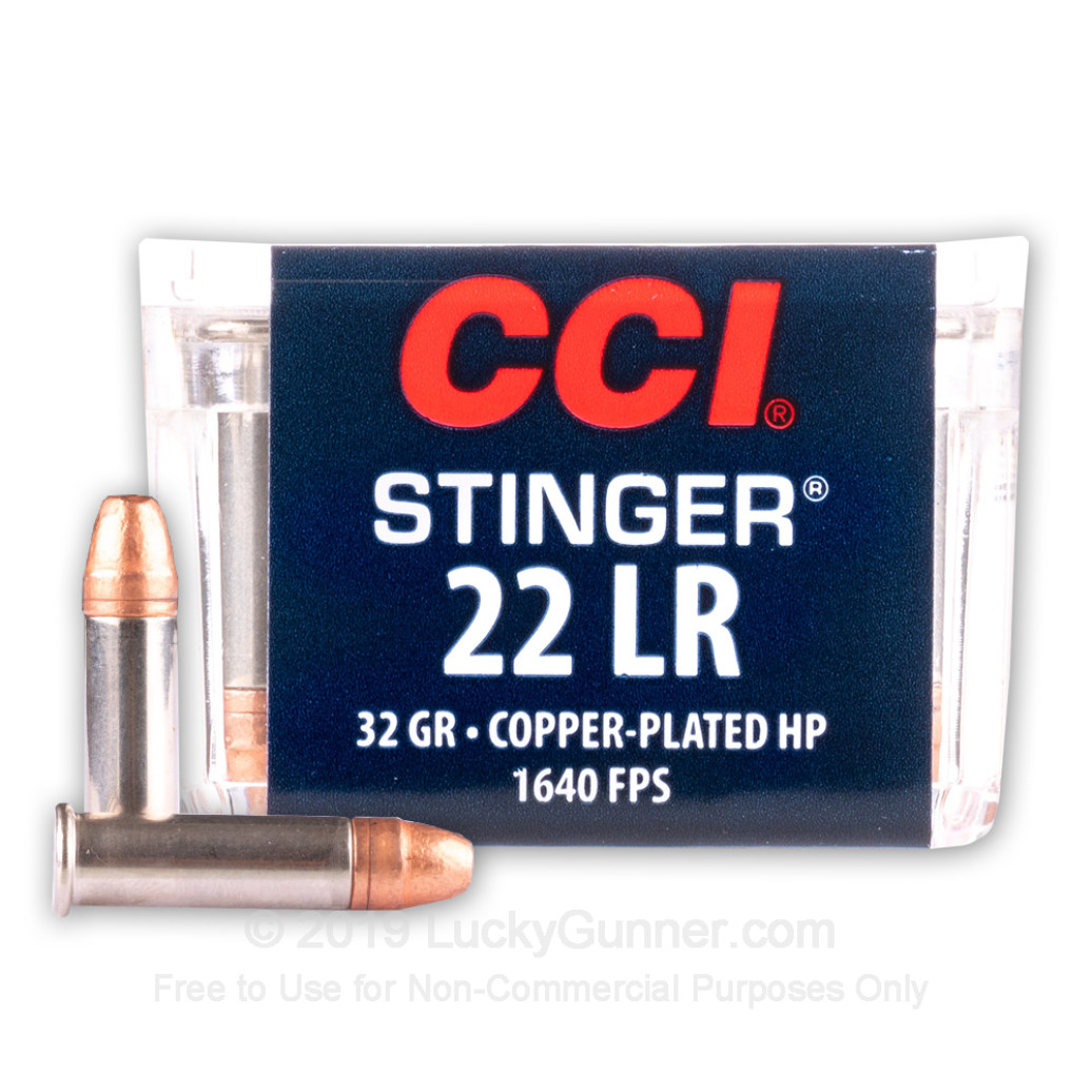 A descendant of the first hypervelocity .22 Long Rifle ammunition to hit the market in 1967, this .22 LR 32 grain copper plated hollow point (CPHP) Stinger ammo is manufactured by CCI. This round is specifically designed for varmint hunting, and its high muzzle velocity of 1640 feet per second ensures you will take down your intended small target swiftly with fierce stopping power.