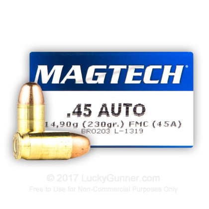45 ACP - 230 Grain FMJ - Magtech - 50 Rounds