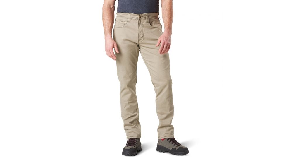 5.11 brings you the comfort and styling of your favorite everyday pant with tactical functionality and stretch built right in. The Defender-Flex pant has been developed for 5.11 end users who are looking for low-vis tactical without sacrificing performance at the firing range or comfort for everyday wear. Crafted with a Cavalry Twill cotton/polyester blend, with just enough elastane for stretch, these pants are made to keep their shape with style. The five-pocket styling and soft fade finish look sharp, and the back mag pockets mean you will always be ready. Comfortable, slim, and tactical pant Five pocket styling plus two rear hip pockets Soft fade finish and enzyme washed fabric Fitted waistband Button top fly with locking YKK zipper 8.8 oz. stretch Cavalry twill (66% cotton / 31% poly / 3% elastane) Dual back patch pockets GSA/TAA compliant