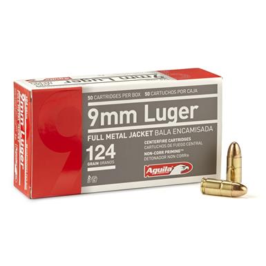 Aguila, 9mm, FMJ, 124 Grain, 50 Rounds - 649051, 9mm Ammo at Sportsman's Guide