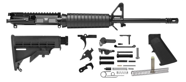 This 16" rifle kit comes with everything needed to complete a stripped lower receiver. It includes a fully assembled, headspaced and test-fired upper receiver, lower parts kit and buttstock. The rifle kit does not include stripped lower receiver or magazines.
