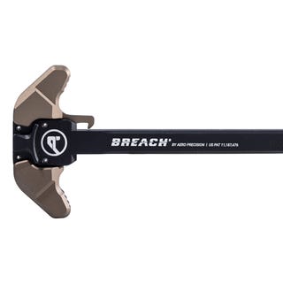 The Aero Precision BREACH® is a rugged, ambidextrous, precision-manufactured charging handle for the M5/AR308 platform. The BREACH's design utilizes a reinforced 7075-T6 aluminum bar that is up to the most demanding tasks. Its ambidextrous levers feature a patent-pending, dual spring system, that directs the force-of-use into the robust charging handle body. This allows the shooter to use a one-sided charging technique without compromising the part — a pitfall for traditional charging handles. The small lever configuration provides a low-profile, easily gripped interface that is comfortable when slung and can be actuated effortlessly from either side of your rifle. This BREACH® Charging handle features colored anodizing on the levers. While imperfections are few and far between, there are occasional variances in the finish. This can include variances in the lever itself, or slight differences in color when comparing two charging handles from different batches. To learn more about colored anodizing please visit https://www.aeroprecisionusa.com/knowledge-center/colored-anodizing-finishes. Learn more about the BREACH® Charging Handle NOTE: This charging handle is NOT compatible with Sig Sauer 716, Savage MSR10, or Smith and Wesson M&P10 rifles as they utilize a proprietary design. Features: Ambidextrous Controls: Ergonomically designed 7075 Aluminum levers allow the user to easily charge their firearm with either hand, while remaining low profile and comfortable when slung. Robust Construction: Reduced chamfer angles on the 7075 Aluminum reinforced bar design provide a strong foundation for the BREACH® that is resistant to rotational flex or breakage. Patent-pending Lever Mechanism: Transfers force-of-use away from the roll pins and into the top/head portion of the reinforced bar protecting the charging handle in the most demanding circumstances. Gas Deflection Shelf: Aligns with the upper receiver to redirect gas flow away from the users face when shooting suppressed. Functional Design: It is not all just good looks. Stylistic cuts on the charging handle also help to clear stuck on carbon and debris from the upper receiver, while the spacer design seals and protects the lever mechanism from debris. Kodiak Brown Anodized Charging Handle Levers This product is blemished. Blemishes may include: Plating inconsistencies Pits Scratches Dents Flaws in finish Our blemished products are fully functional, they just didn't meet our high standards. They are a great product at a discounted price for someone who doesn't mind a slight imperfection. We do not accept returns on blemished products.