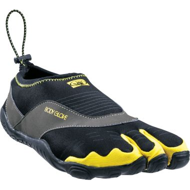 Body Glove Men's 3T Cinch Water Shoes Unique three-toe design Stretch-fit, synthetic and mesh uppers Integrated drainage system Gripping rubber outsoles Body Glove's Men's 3T Cinch Water Shoes boast a unique three-toe design that delivers comfortable water-shoe performance. Stretch-fit, synthetic and mesh uppers with adjustable shock laces for a snug fit and breathable comfort. Integrated drainage systems let water escape. Gripping rubber outsoles. Imported. Men's whole sizes: 8-13, medium width. Color: Black/Yellow.