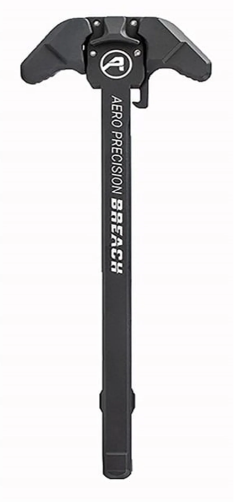 Made in USA The Aero Precision BREACH® is a rugged, ambidextrous, precision-manufactured charging handle for the M5/AR308 platform. The BREACH's design utilizes a reinforced 7075-T6 aluminum bar that is up to the most demanding tasks. Its ambidextrous levers feature a patent-pending, dual spring system, that directs the force-of-use into the robust charging handle body. This allows the shooter to use a one-sided charging technique without compromising the part — a pitfall for traditional charging handles. Weight: 1.45 oz. The small lever configuration provides a low-profile, easily gripped interface that is comfortable when slung and can be actuated effortlessly from either side of your rifle. NOTE: This charging handle is NOT compatible with Sig Sauer 716, Savage MSR10, or Smith and Wesson M&P10 rifles as they utilize a proprietary design. FEATURES: Ambidextrous Controls: Ergonomically designed 7075 Aluminum levers allow the user to easily charge their firearm with either hand, while remaining low profile and comfortable when slung. Robust Construction: Reduced chamfer angles on the 7075 Aluminum reinforced bar design provide a strong foundation for the BREACH® that is resistant to rotational flex or breakage. Patent-pending Lever Mechanism: Transfers force-of-use away from the roll pins and into the top/head portion of the reinforced bar protecting the charging handle in the most demanding circumstances. Gas Deflection Shelf: Aligns with the upper receiver to redirect gas flow away from the users face when shooting suppressed. Functional Design: It is not all just good looks. Stylistic cuts on the charging handle also help to clear stuck on carbon and debris from the upper receiver, while the spacer design seals and protects the lever mechanism from debris.