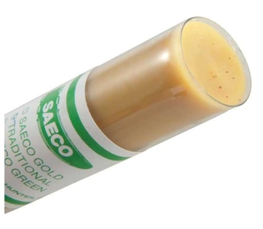 Long popular with folks who are serious about casting their own lead bullets, SAECO lubes help minimize lead accumulation in the rifling that can impair accuracy. Comes in 1" dia. x 4" long sticks that fit popular sizer/lubricators, including the SAECO Lubri-Sizer. Traditional rifle formula is the classic NRA recipe of natural beeswax (no synthetics) and Alox that helps prevent leading at higher velocities. Gold is an Aloxfree lube specifically formulated to combat leading in the shorter barrels of handguns. Can be used in rifles, too, and can even be used as a fluxing agent in your casting furnace. All-purpose Green formula works in rifles and handguns; slightly harder than the other SAECO lubes and Alox-free.