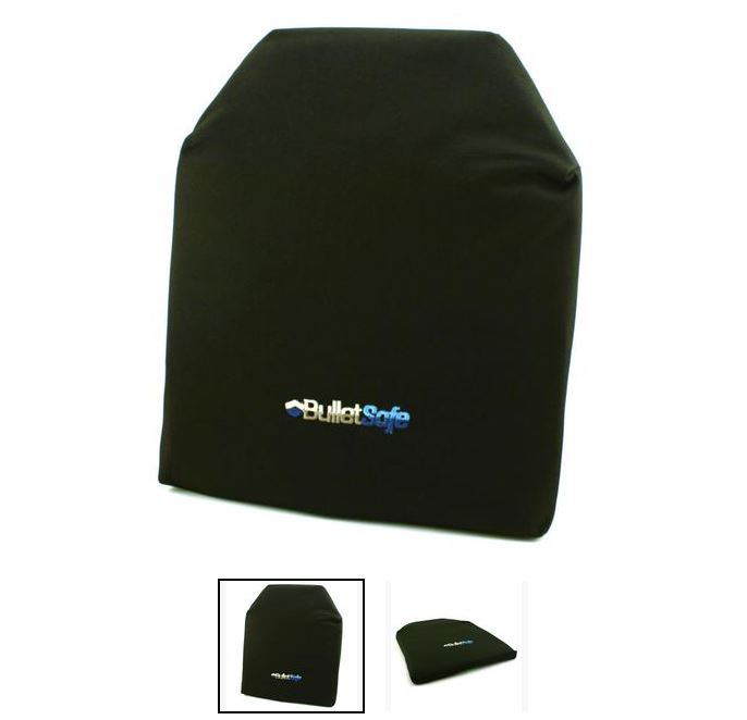 BulletSafe's flexible body armor fits in all standard-size plate carriers and stops bullets. It is rated at NIJ level IIIA.