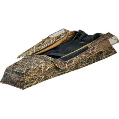 When birds are wary, you need a blind that lets you fly under their radar. Enter Cabela's Instinct Low Pro Layout Blind. It has a low 17"H profile that won't stand out to hard-hunted birds, but it doesn't sacrifice comfort. Using a framed hammock seat, it holds you up and off the ground in a relaxed position. Padded head rest adds cushioning, ensuring you'll hunt comfortably during every last bit of shooting light. 10" tarpaulin waterproof bottom keeps you dry even when hunting wet, muddy ground. Stubble straps let you add natural vegetation that, when combined with Cabelas Zonz™ Waterfowl camo, hides you from even the sharpest-eyed birds. Rear access zipper for storing gear and keeping it organized. Zippered foot section for easy clean out. Main material is water-resistant 600-denier polyester with a PVC backing. Black-powder-coated aluminum frame. Imported.