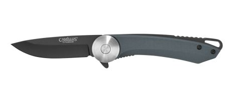 Camillus Cirque folding knife features a 2.75" AUS‑8 blade with carbonitride titanium non‑stick treatment in slate blue. The 7" overall length pairs a rugged G10 handle with a Quick Launch bearing system for rapid deployment. Includes reversible pocket clip and lanyard hole for versatile EDC carry.