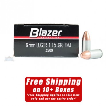 CCI BLAZER 9MM 115GR FMJ ALUMINUM CASE AMMUNITION, 50 ROUND BOX