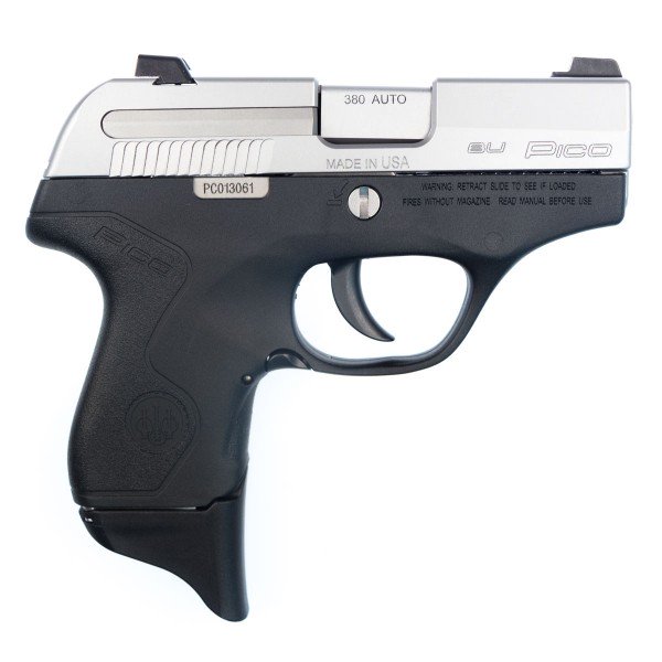 BERETTA PICO 380 INOX Action: Semi-Automatic, Double Action * Finish: Stainless * Barrel Length: 2.7 * Sights: 3 Dot White * Magazine(s): 2 - 6 Round (1 Flush + 1 Finger Rest) * Grips: Polymer * Weight: 11.5 oz. * Overall Length: 5.1 *