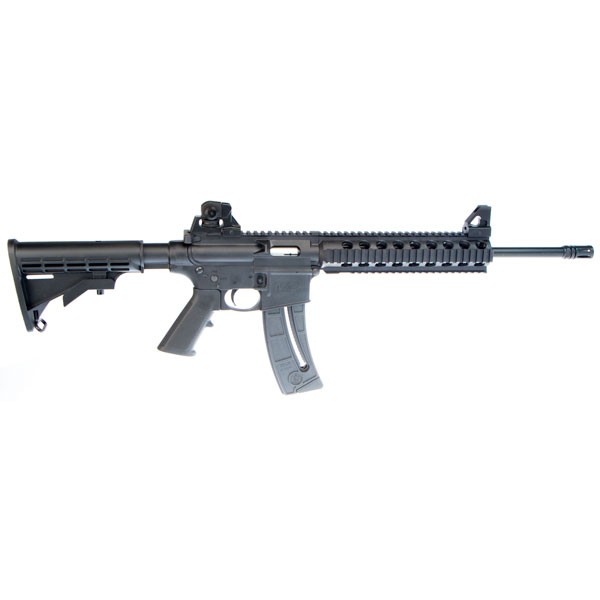 SW MP15-22 22LR Action: Semi-Auto Blow Back * Finish: Matte Black * Barrel: 16 1 in 15 Twist * Sights: Adjustable A2 Post, Adjustable Dual Aperture * Magazine(s): 1-25 Round * Stock: 6-Position Adjustable * Weight: 5.5 lbs. * Overall Length: 30.5-3