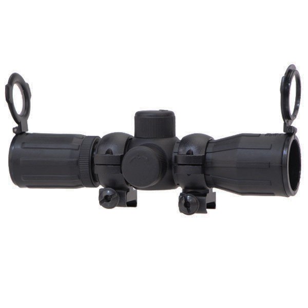 Brand New * Target Sports * 4x30 Rangefinding Scope * Rubber Armored * 2-Color Reticle (Green or Red) * Flip-Up Lens Covers * Coated Lenses * 1/4 Click @ 100yds Windage and Elevation Adjustments * 7.5 Overall Length * FREE Rings Included!