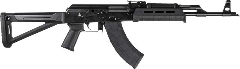 Red Army Standard RAS47 762X39 MAGPUL MOE Furniture , 100% American made stamped AK - RAS47, is now available. Features a T shaped magazine catch, compatibility with AKM furniture, slant muzzle brake, side scope rail, bolt hold open safety, an enhanced dust cover and has standard AK sights. The RAS47 has a black nitrite finish and uses Century's new RAK-1 Enhanced Trigger Group. Comes with two 30 rd. Magpul mags., MOE AK stock, pistol grip and handguard. Barrel: 4150 Nitride Treated 16.5" with a 1:10 twist, Overall: 35.25", Weight: 7.37 lbs.