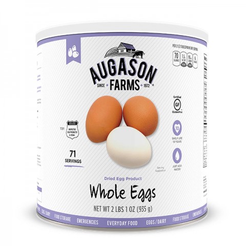 Augason Farms Dried Whole Eggs are an inexpensive source of high quality protein with an extended shelf life of up to 10 years. It’s easy to always have eggs on hand. In addition to being convenient food storage, they’re useful in everyday cooking in any recipe that calls for eggs. Use them to make delightful scrambled eggs or French toast, among other things. When used with other dry ingredients, it’s not necessary to reconstitute the eggs. Simply add the powder to the other recipe ingredients and increase the water amount appropriately.