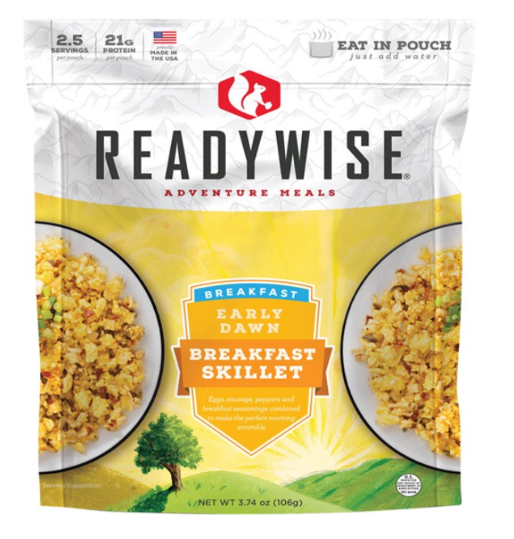 Each pouch of our Early Dawn Breakfast Skillet contains 2.5 servings and is resealable. These pouches are lightweight making them easily portable on any outdoor adventure. Just add water and you can eat directly from the pouch.