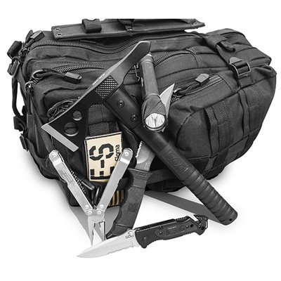 The Echo-Sigma Get-Home-Bag is a midsized disaster preparedness kit that is perfectly suited to keep on hand in your office, dorm room or the trunk of your car. The SOG Special Edition Get Home Bag comes packed with all of your favorite SOG tools and blades: SOG S44 Multi Tool with compound leverage SOG Seal Pup Fixed Blade Knife SOG Escape Folding Knife with glass breaker and belt cutter SOG FastHawk SOG DE-04 "Dark Energy" 231 Lumen Tactical Flashlight This is, of course, in addition to all of the regular great life saving features of the original Get Home Bag! Pre-configured and ready means: Packaging removed from all items. Documentation consolidated into water tight packaging. All items arranged, organized and stowed. Ready for fast access in case of emergency. Kit Contains: 1 Compact Backpack 1 Hydration System (2.5 Liter) by Condor Outdoor 1 Echo-Sigma 1-3 Day Provision Pack (Arid) 1 Echo-Sigma Compact Survival Kit 1 Echo-Sigma Compact First Aid Kit 1 SOG S44 Multi Tool with compound leverage 1 SOG DE-04 "Dark Energy" 231 Lumen Tactical Flashlight 50 Feet of Military Grade 550 Paracord 10 Extra Large Zip Ties 1 Coghlan's Emergency Tube Tent 1 Emergency Poncho 1 Plexiglass Mirror for signaling help 1 Thermal Sleeping Bag Cocoon by Survival Industries 6 Premium AA Alkaline Batteries (guaranteed fresh for 7 years) 1 Pair Leather Work Gloves 2 N95 Rated Respirator Masks 1 Pair of Protective Goggles 2 Hand Warmers by Coghlan's Big Book Catalog, Issue:68, Page:392