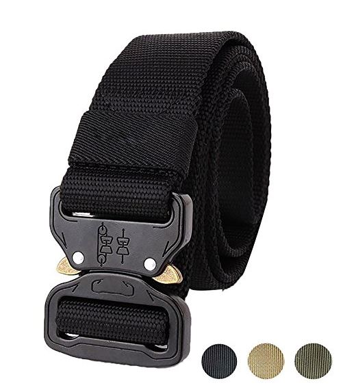 [ SIZE ] Length: 49 inches(125cm), Width:1.5 inches(3.8cm), fit for waist up to 41 inches. Buckle Size: 2" in width and 5/16" in thickness. [ HEAVY DUTY BUCKLE ] This tactical belt features a military belt buckle made from heavy-duty metal. [ QUICK RELEASE ] Intuitive and smooth quick release functionality when you push the golden tabs down at the same time. If just one tab is engaged, the connection will still hold and fully re-lock on its own. [ HIGH QUALITY BELT ] Made from 1000 D environmental friendly nylon material, soft and comfortable for daily use. [ 2-YEAR WARRANTY ] 2-year quality warranty. 30-day hassle free return policy.