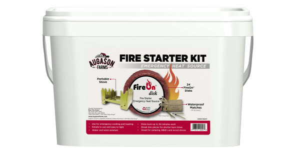 With Augason Farms Fire Starter Kit you have 24 FireOn® disks, a portable stove and 4 boxes of waterproof matches, perfect for cooking, camping, emergency situations, barbecues, fireplaces and wood stoves. Each FireOn® disk can be used as a fire starter or as a sole heat source.