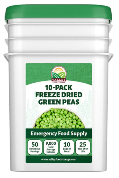 Valley Food StorageFreeze Dried Green Peas are one of the most popular veggies found in America! They keep their sweet taste, fresh green color, and nutritional content from fresh peas and can be added to almost any meal imaginable. Each pouch of freeze dried green peas contains 5 servings.