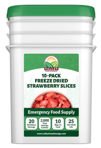 Valley Food Storage’s Freeze Dried Strawberry Slices are are packed with Vitamin C, and provide essential nutrients needed to keep your body going. Made simple ingredients our strawberries keep your family’s health and wellness at the forefront while protecting them with long term food storage for up to 25 years! Each pouch of freeze dried strawberry slices contains 2 servings.