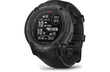 Product Info for Garmin Instinct 2X Solar Tactical Edition Watch Why just carry out the mission? Own it with Instinct 2X Solar Tactical Edition. This bold, rugged GPS smartwatch is built to U.S. military standard (MIL-STD-810), water-rated to 10 ATM and features solar charging for unlimited battery life in smartwatch mode when exposed to 3 hours of direct sunlight (50,000 lux) per day. Dedicated tactical features, such as night vision goggle compatibility, waypoint projection and dual-position GPS format, keep you mission-ready. Stealth mode lets you go dark by disabling wireless communication and data sharing. Count on multi-band signal reception technology to provide more accurate positioning, and multi-GNSS support to provide more reliable service in challenging environments. Stay ready for anything with all-day health monitoring for energy levels, stress, sleep, Pulse Ox, heart rate and more (this is not a medical device, and data presented is intended to be a close estimation of metrics tracked. Pulse Ox not available in all countries). Specifications for Garmin Instinct 2X Solar Tactical Edition Watch: Manufacturer: Garmin Gender: Unisex Dial Color: Monochrome Case Material: Fiber-Reinforced Polymer Band/Strap Material: Silicone Water Resistance Level: Water Resistant Water Resistant Mark: 10 atm Weight: 67 g Lens Material: Power Glass Width: 26 mm Features of Garmin Instinct 2X Solar Tactical Edition Watch Bold, rugged GPS smartwatch is built to U.S. military standard 810 for thermal, shock and water resistance with a large solar-charged display and durable 50 mm polymer case Solar charging: Power Glass lens extends battery life, producing 50% more energy than the standard Instinct 2 solar watch Infinite battery life in smartwatch mode when exposed to 3 hours of direct sunlight (50,000 lux) per day Dedicated tactical features include jumpmaster activity, waypoint projection, dual-position GPS format and preloaded tactical activity Go dark with stealth mode to disable wireless communication and data sharing Built-in LED flashlight with variable intensities and strobe modes gives you greater visibility while you train at night and provides convenient illumination when you need it 24/7 health and wellness tracking helps you stay on top of your body metrics with wrist-based heart rate, advanced sleep monitoring, respiration tracking, Pulse Ox and more (this is not a medical device, and data presented is intended to be a close estimation of metrics tracked. Pulse Ox not available in all countries.) Built-in sports apps to take on running, biking, swimming, strength training and more, plus VO2 max and other training features Multi-band signal reception technology delivers more accurate positioning than single band devices Navigate the outdoors with built-in sensors for 3-axis compass and barometric altimeter Integrated torchlight feature with SOS strobe mode commands attention in emergency situations Live connected with smart notifications, Garmin Pay contactless payments and Connect IQ app integration (compatible smartphone required) Package Contents: Garmin Instinct 2X Solar Tactical Edition Watch