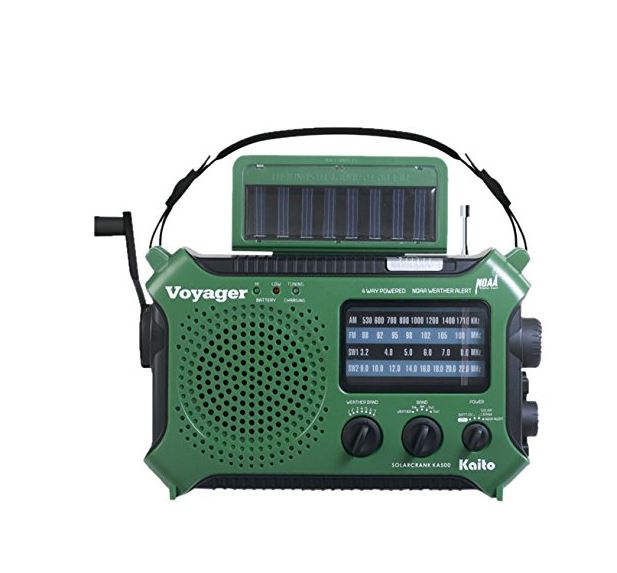 5-way powered emergency radio, AC, battery, hand crank, solar, computer