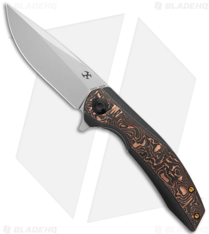 Overall Length: 8.25" Blade Length: 3.50" Cutting Edge: 3.63" Blade Width: 1.13" Blade Thickness: 0.14" Blade Material: CPM S35VN Blade Style: Drop Point Blade Grind: Flat Finish: Stonewash Edge Type: Plain Handle Length: 4.63" Handle Width: 1.25" Handle Thickness: 0.49" Handle Material: Carbon Fiber, Titanium Color: Black, Copper Frame/Liner: Titanium Weight: 4.50 oz. User: Right Hand Pocket Clip: Tip-Up Knife Type: Manual Opener: Flipper Lock Type: Frame Lock Brand: Kansept Model: Accipiter Country of Origin: China Best Use: Everyday Carry Product Type: Knife