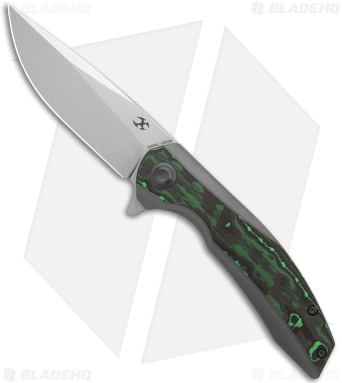 Kansept Knives Accipiter Frame Lock Knife Titanium + Green CF (3.5" Satin)