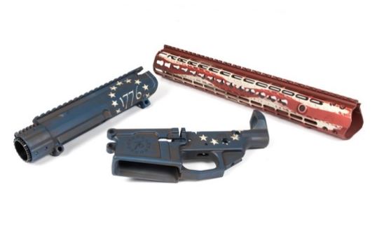 Our July Builder Set features an M5E1 set with a 1776 Red, White & Blue Cerakote finish. These sets are hand finished by Blown Deadline. This package deal includes the finished pieces you need to assemble your own 1776 Red, White & Blue Cerakote M5E1 Rifle, including an M5E1 Enhanced Upper Receiver, M5 (.308) Betsy Ross Special Edition Lower Receiver and Gen 2 Enhanced Handguard of choice all finished in 1776 Red, White & Blue Cerakote. Stand out at the range with a unique and eye catching build. This is a one time offer for this finish - once they are gone, they are gone! Includes: M5E1 Enhanced Upper Receiver finished in 1776 Red, White & Blue Cerakote. Upper receiver is assembled and includes the forward assist, dust cover and barrel nut. 15" Enhanced Gen 2 KeyMod or M-LOK Handguard finished in 1776 Red, White & Blue Cerakote M5 (.308) Betsy Ross Special Edition Lower Receiver finished in 1776 Red, White & Blue Cerakote This set includes our recently released Betsy Ross Special Edition Lower Receiver. This lower receiver features a custom Betsy Ross "76" graphic engraved on the magwell of the receiver with a "BETSY" model and special serial number designation (1776-XXXX for AR15 and BR76-XXXX for M5). This set also includes a commemorative Betsy Ross patch. This patch is limited to those who purchase a Special Edition: Betsy Ross Lower Receiver either individually or in a receiver/builder set. Finish this build off with a matching stock and grip. These accessory pieces are available in a very limited quantity. Magpul CTR Stock and MOE Grip in 1776 Red, White & Blue Cerakote Magpul STR Stock and MOE Grip in 1776 Red, White & Blue Cerakote Magpul PRS Stock and MOE Grip in 1776 Red, White & Blue Cerakote This July Builder Set is also available for the M4E1 (AR15) platform. We have two different July Builder Sets this month. View our Parchment M4E1 and M5E1 Finishes. This product is blemished. Blemishes may include: Plating inconsistencies Pits Scratches Dents Flaws in finish Our blemished products are fully functional, they just didn't meet our high standards. They are a great product at a discounted price for someone who doesn't mind a slight imperfection. We do not accept returns on blemished products. FFL Terms and Conditions - Any items placed on the same order as a controlled item will also be shipped to the FFL. If you would like additional items shipped to you directly, please place them on a separate order. - Please enter your information or the receiving party's (the person that will be picking it up) information under "Recipient Name" while checking out. There will be a seperate field for FFL name, phone and zip code and we will obtain the shipping address directly from them. - To expedite your order, please have your dealer fax or email their FFL to us. If the dealer you are using to transfer a firearm has not sent us a currently updated FFL to put on file, there will be an extended period of time needed to process your order. Fax: 253-272-1168 | Email: ffl@aeroprecisionusa.com There will be a 30% restocking fee on all controlled items returned because of failed background checks. Federal law requires that you be 21 years or age or older to purchase a stripped receiver or frame. If a frame or receiver can only be made into a long gun (rifle or shotgun), it is still a frame or receiver not a handgun or long gun. However, they still are "firearms" by definition, and subject to the same GCA limitations as any other firearms. See Section 921(a)(3)(b). 18 U.S.C. Section 922(b)(1) makes it unlawful for a licensee to sell any firearm other than a shotgun or rifle to any person under the age of 21.