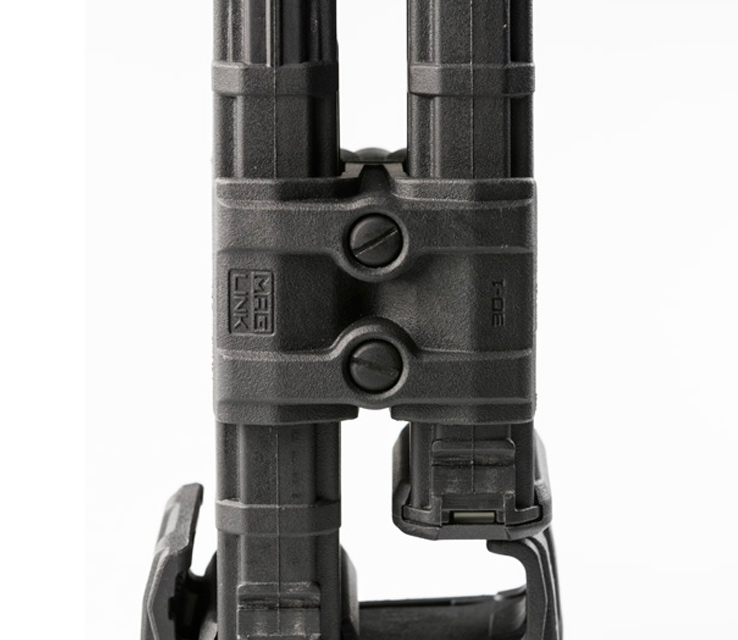 Magpul Maglink Magazine Coupler- Keep an additional 30 rounds on your weapon at all times with the Maglink Coupler. This Coupler allows you to place two PMAG 30 or PMAG 30 M3 magazines back to back for more efficient speed reloads. The Coupler is made of a durable and lightweight reinforced polymer.
