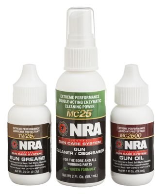 NRA Gun care kit includes the three most popular NRA gun care products MC25 Gun Cleaner, MC2500 Gun Oil and TW25 Gun Grease