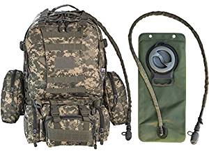 Monkey Paks Tactical Backpack Bundle with 2.5L Hydration Water Bladder and 3 Molle Bags