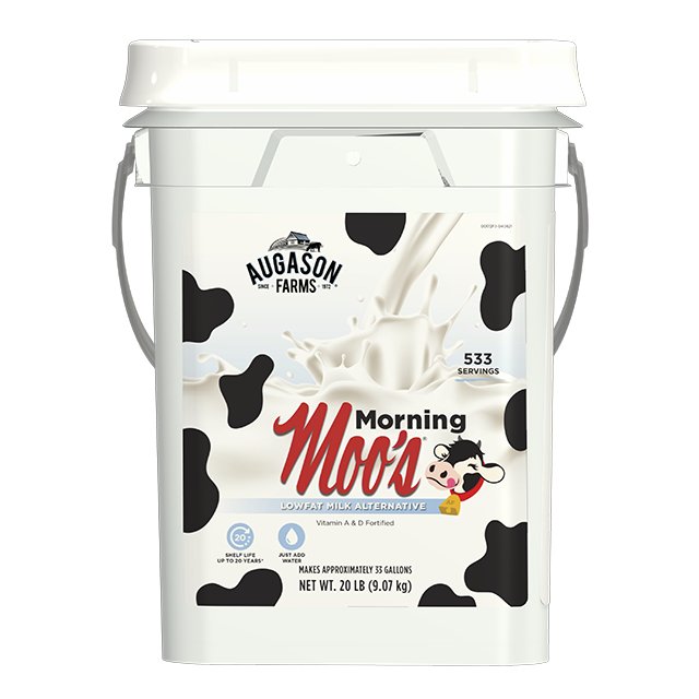 Augason Farm's signature Morning Moo’s® Lowfat Milk Alternative looks and tastes like fresh milk, is rich in calcium, and fortified with vitamins. You’ll love this whey-based beverage for everyday use or as a part of your emergency food supply.