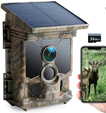 Solar Trail Camera 4K 30fps, CEYOMUR WiFi Bluetooth 40MP Game Camera, 120° Detection Angle Night Vision Motion Activated IP66 Waterproof for Wildlife Monitoring with U3 32GB Micro SD Card