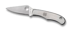 Smallest knife in Spyderco's product line; slip-joint folder, with flat-ground blade made of stainless steel and satin-finished stainless steel handle