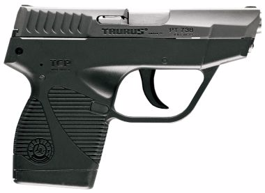 Taurus® 738 TCP .380 Semi-Automatic Centerfire Pistol Proven reliability and function An excellent concealed-carry option Robust design and construction Taurus semiautomatic pistols deliver excellent performance at prices that make them a great value. The TCP .380 ACP is the lightest pistol in the Taurus lineup at just 10.2 oz., making it an excellent concealed-carry option. The frame is rugged polymer, and the metal components are stainless steel and titanium. Low-profile fixed sights. Double action only. Loaded-chamber indicator. Ambidextrous magazine release. 6+1 capacity.