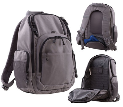 Features: 1050D Nylon construction Padded air mesh back panel and shoulder straps for better ventilation Reinforced grab and go carry handle Fleece lined and zippered upper sunglass pouch Easy access hidden tabbed pistol pocket with loop inside for holster Padded and zippered electronics pocket with headphone pass through channel Concealed padded zipper pocket built into the kidney pad that is perfect for concealed carry Large main compartment with padded bottom Covered hydration tube opening Padded tablet sleeve Office/organizer panel with pen slots 17.5"H x 8.5"W x 16"L 25 Liter (1525 cubic inch) capacity Imported