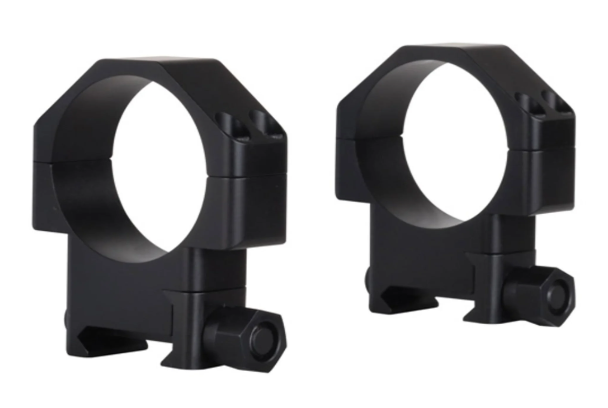 Made in USA TSR "W" Series Rings, precisely machined from an alloy steel billet, with tolerances held to .0002", give maximum scope/ring contact. Holds scope securely against recoil. Four-screw cap lets you align the reticle, tighten the left side of the cap, then the right side without the scope rotating. Radiused edges and corners help prevent snagging while providing attractive appearance. Large, clamp-nut lets you torque rings to Weaver-style or Mil-STD 1913 (Picatinny) bases. SPECS: Alloy Steel, black oxide finish to Mil-C-13924 standards. 5/8" (15.8mm) wide. Height measured from top of base to center of ring. 30mm - Low: .925" (23.5mm).