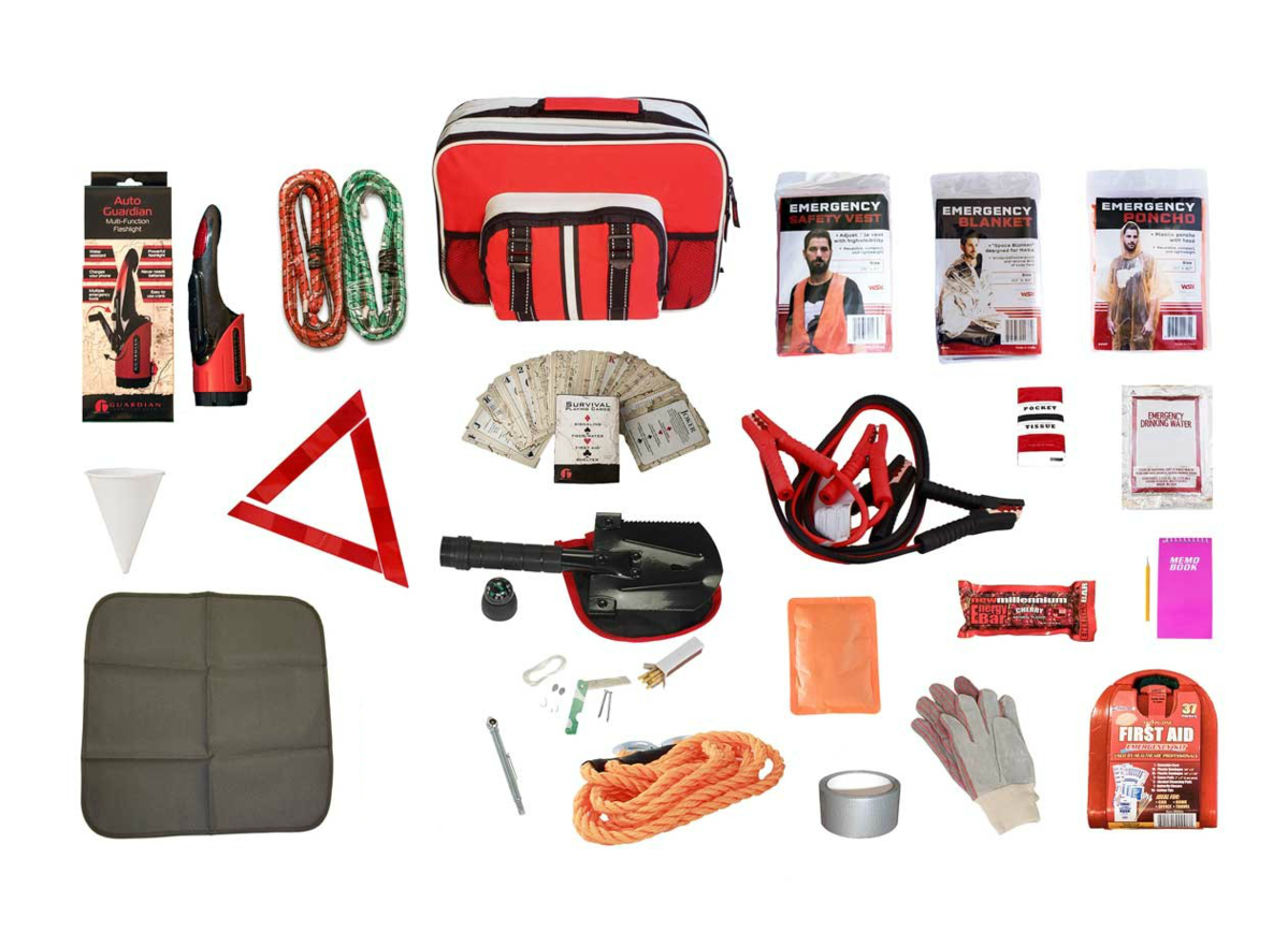 Never be stranded without these essential items found in our Ultimate Auto Kit in the trunk of your car. Hand-assembled in the USA.