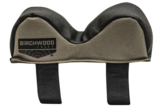 Birchwood Casey's Universal Front Rest provides a quick connection to the front of a shooting rest without having to lace or tie the bag on. Just use the straps to thread through and attach. All three bags are shaped to fit different forend sizes to maximize the usage of one shooting rest. It is constructed of leather and polyester which combines to create a solid and secure rest that will not stretch or sag from use. FEATURES