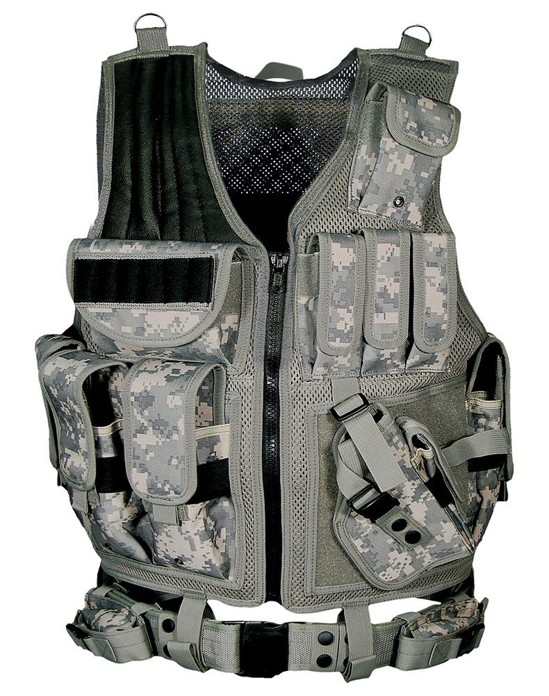 4 deluxe adjustable rifle mag pouches 2 large internal zippered map/document pouches Heavy duty back loop system to carry additional gear/tools Fully adjustable in girth and length Durable rescue pull, mesh system helps release moisture and heat, high quality zippers