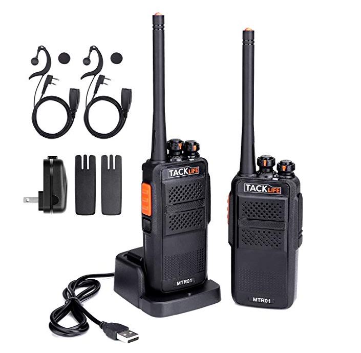 Walkie Talkies, Tacklife MTR01 Advanced Long Range Two-Way Radio with Rechargeable 1300MAh Li-ion Battery, UHF 400-470MHz Transceiver, 16 Channels Using, Earphone and Charger Included - 2 Pcs